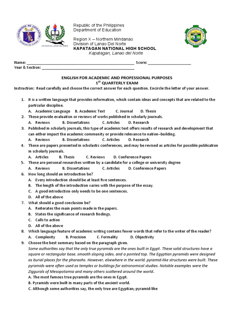 ENGLISH FOR ACADEMIC AND PROFESSIONAL PURPOSES
