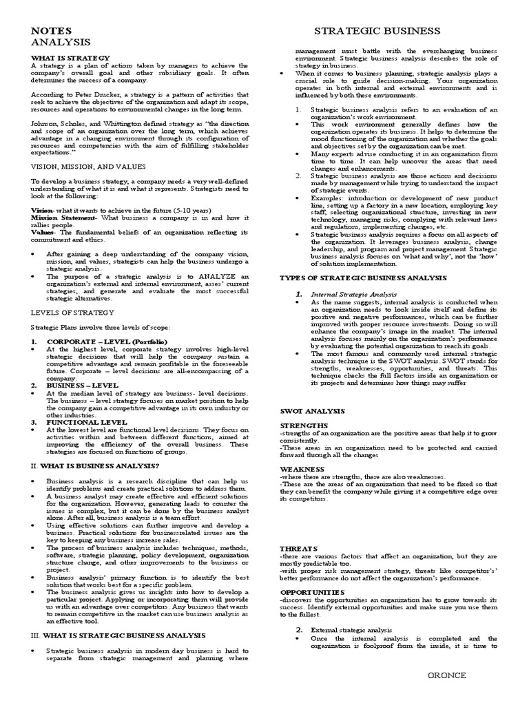 WHAT IS STRATEGY environment. Strategic business analysis describes the role of
