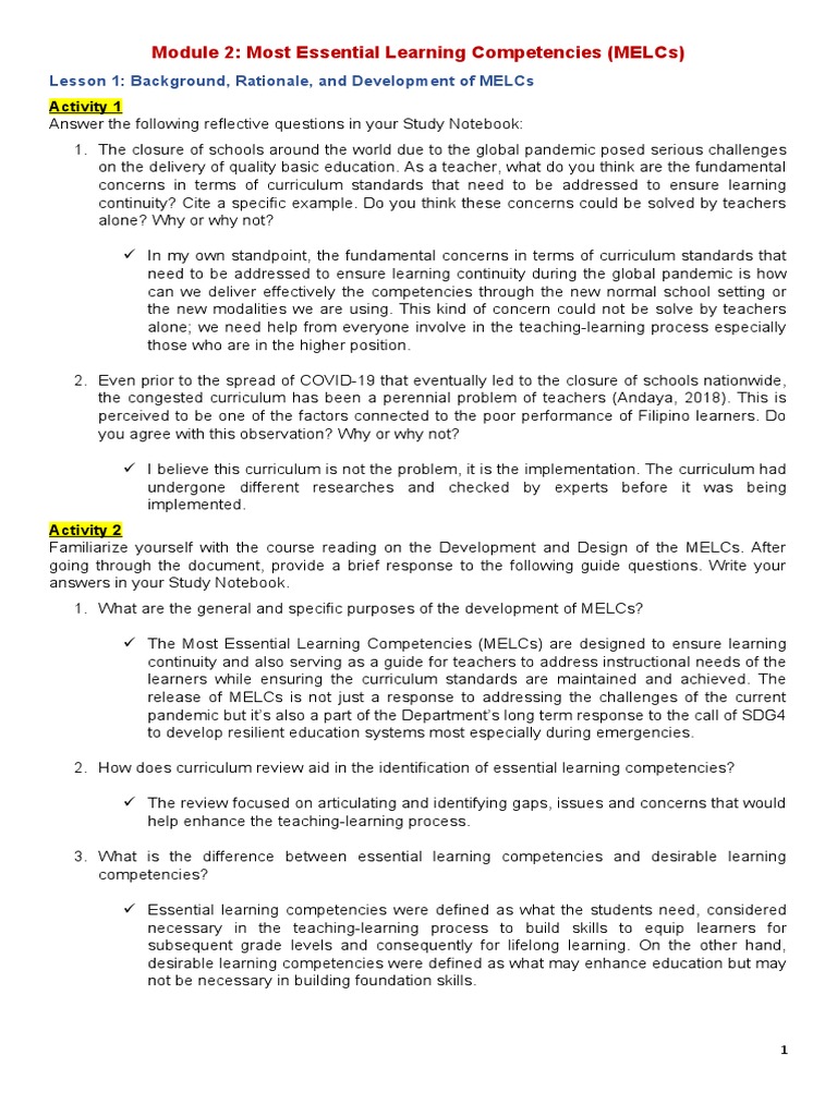 Module 2: Most Essential Learning Competencies (MELCs)