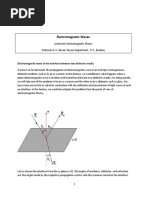 x sin r z cos r E// r exp i t n1 2 o , x sin t + z cos t E// t exp i t n2 2 , o where in the second equation the negative sign before z cos r indicates different propagation direction (upward in the z direction) from the incoming and refraction waves. The subscript // means that the electric field is polarized parallel to the plane of incidence for the sketched TM transverse wave. Note: For EM waves, two transverse vibrating directions exist. In general, the resultant electric field vector will moves around in an ellipse instead of pointing in the same direction all the time. The path of the E vector is like a spiral in this situation.