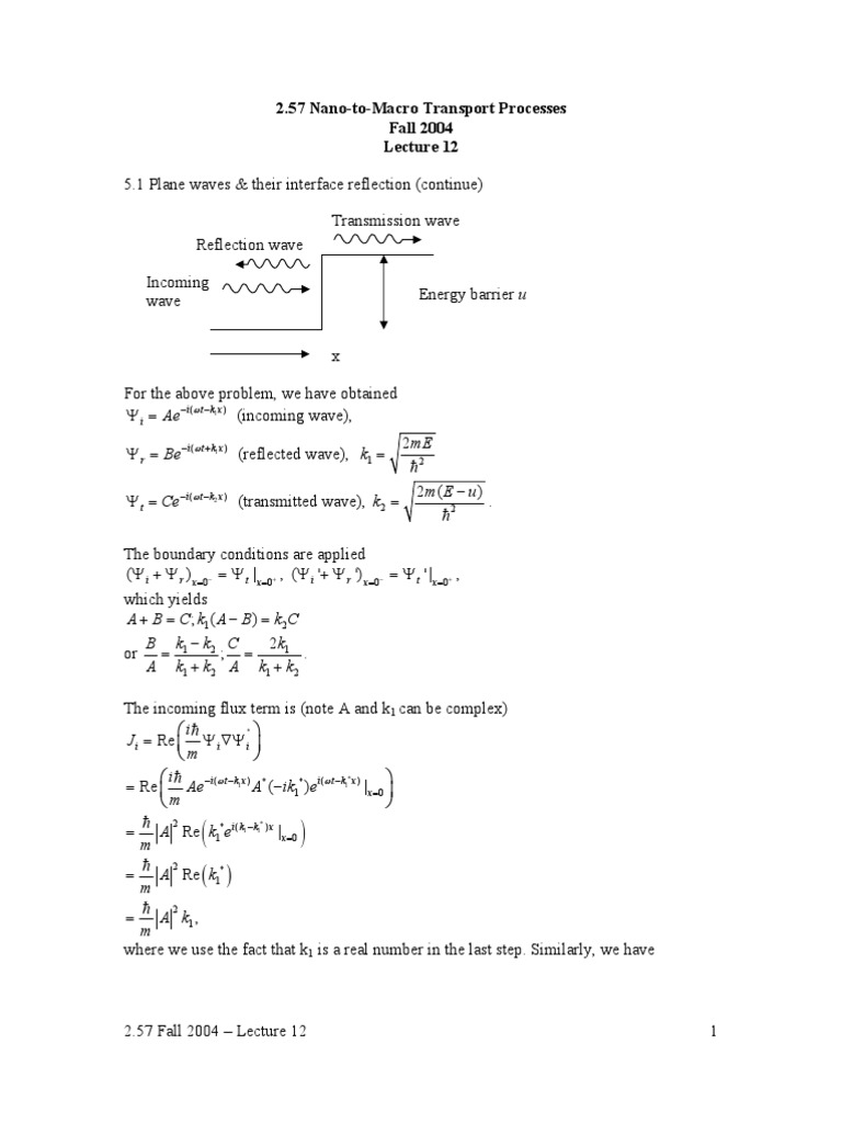 The incoming flux term is (note A and k1 can be complex) * i J i = Re i i m * i = Re Ae i (t k1x ) A* (ik1* )ei (t k1 x ) |x =0 m