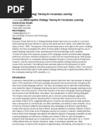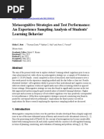 Measuring learning strategies with questionnaires Self-report questionnaires are the most frequently used instruments for assessing learning strategies (cf. Winne and Perry 2000). Richardson (2004) points out that a great number of questionnaires (e.g., Approaches to Studying Inventory, ASI or Study Process Questionnaire, SPQ), are mainly aimed at general learning strategies. In his view, the assumption that learners are able to provide valid reports of their predispositions can be questioned. He illustrates that many questionnaires were constructed following interviewbased research, in which the learners were questioned about conducting particular tasks, for example, reading an academic text. In interview-based self reports, the validity of the learners reports depends on the fact that the mental episodes in performing the task persist as objects of focal attention in short-term memory. According to Richardson (2004), interviews obtained immediately after task completion may be considered to give an accurate reflection of on-line cognitive processing. In questionnaires on general learning strategies, the learners are asked to give cumulative and retrospective accounts of how they perform academic tasks. Hereto, the learners should access long-term memory and it is unlikely that they have retained an accurate record in long-term memory of the mental activities that were involved (Richardson 2004). In this case, the learners perceptions about his or her strategies are measured. More specifically, the learners should abstract one general characterization of executing learning strategies over multiple occurrences and events of strategic learning within general types of situations (Samuelstuen and Brten 2007). The number of questionnaires is still rising. New theoretical insights or educational innovations, and psychometric results obtained have resulted in adjusting or revising questionnaires (e.g., Approaches to Learning and Studying Inventory, ALSI; Entwistle and McCune 2004). Questionnaires (e.g., Motivated Strategies for Learning Questionnaire, MSLQ; Pintrich and De Groot 1990) are translated and attuned to the educational situation in different countries (Blom and Severiens 2008). Further, specific metacognition questionnaires are regularly being used that are not aimed at the wide spectrum of learning strategies, but only at measuring metacognitive aspects thereof (e.g., Metacognitive Awareness Inventory, MAI, Schraw and Dennison 1994; Self-efficacy and Metacognition Learning Inventory-Science, SEMLI-S, Thomas et al. 2008).