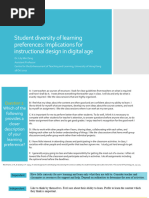 Applying learning strategy questionnaires: problems and possibilities Anderson, D., Nashon, S., & Thomas, G. P. (2009). Evolution of research methods for probing and understanding metacognition. Research in Science Education, 39, 181195. Bannert, M., & Mengelkamp, C. (2008). Assessment of metacognitive skills by means of instruction to think aloud and reflect when prompted. Does the verbalisation method affect the learning? Metacognition and Learning, 3(1), 3958. Biggs, J., Kember, D., & Leung, D. Y. P. (2001). The revised two-factor study process questionnaire: R-SPQ2F. British Journal of Educational Psychology, 71, 133149. Blom, S., & Severiens, S. E. (2008). Engagement in self-regulated deep learning of successful immigrant and non-immigrant students in inner city schools. European Journal of Psychology of Education, 23(1), 41 58. Brten, I., & Samuelstuen, M. S. (2007). Measuring strategic processing: Comparing task-specific selfreports to traces. Metacognition and Learning, 2(1), 120. Broekkamp, H., & Van Hout-Wolters, B. H. A. M. (2007). Students adaptation of study strategies when preparing for classroom tests. Educational Psychology Review, 19(4), 401428. Brown, W. F. (1986). Effective study test. Iowa City: ACT. Butler, D. L., & Cartier, S. C. (2004). Promoting effective task interpretation as an important work habit: A key to successful teaching and learning. Teachers College Record, 106, 17291758. Campbell, D. T., & Fiske, D. W. (1959). Convergent and discriminant validation by the multitraitmultimethod matrix. Psychological Bulletin, 56, 81105. Cromley, J. G., & Azevedo, R. (2006). Self-report of reading comprehension strategies: What are we measuring? Metacognition and Learning, 1(3), 229247. Dunn, R., Dunn, K., & Price, G. E. (1987). Learning style inventory. Lawrence: Price Systems. Entwistle, N., & McCune, V. (2004). The conceptual bases of study strategies inventories. Educational Psychology Review, 16(4), 325346. Entwistle, N., & Ramsden, P. (1983). Understanding student learning. London: Croom Helm. Entwistle, N. J., & Tait, H. (1995). The revised approaches to studying inventory. Centre for research on learning and instruction. Edinburgh: University of Edinburgh. Ericsson, K. A., & Simon, H. A. (1993). Protocol analysis: Verbal reports as data. Cambridge: MIT. Felder, R. M., & Spurlin, J. (2005). Applications, reliability and validity of the index of learning styles. International Journal of Engineering Education, 21(1), 103112. Hadwin, A. L., Winne, P. H., Stockley, D. B., Nesbit, J. C., & Woszczyna, C. (2001). Context moderates students self-reports about how they study. Journal of Educational Psychology, 93, 477487. Hopfenbeck, T. N. (2009). How can we know that they think what we mean? Investigating students selfreports of self-regulated learning. Paper presented at the 13th Biennial Conference for European Research on Learning and Instruction, EARLI, Amsterdam, August 2529th. Iran-Nejad, A., & Chissom, B. S. (1992). Contributions of active and dynamic selfregulation to learning. Innovative Higher Education, 17, 125136. Karabenick, S. A., Woolley, M. E., Friedel, J. M., Ammon, B. V., Blazevski, J., Bonney, C. R., et al. (2007). Cognitive processing of self-report items in educational research: do they think what we mean? Educational Psychologist, 42(3), 139151. Kardash, C. M., & Amlund, J. T. (1991). Self-reported learning strategies and learning from expository text. Contemporary Educational Psychology, 16, 117138. Kolb, D. (1999). Learning-style inventoryversion 3. Boston: Hay/McBer Training Resources Group. Magliano, J. P., Millis, K. K., The RSAT Development Team, Levinstein, I., & Boonthum, C. (2011). Assessing comprehension during reading with the reading strategy assessment tool (RSAT). Meijer, J., Veenman, M. V. J., & van Hout-Wolters, B. H. A. M. (2006a). Metacognitive activities in text studying and problem solving: Development of a taxonomy. Educational Research and Evaluation, 12, 209237. Meijer, J., Elshout-Mohr, M., Van Daalen-Kapteijns, M., Meeus, W., & Tempelaar, D. (2006b). Construction and validation of a questionnaire on metacognition. Paper presented at the Second bi-annual conference of the special interest group on Metacognition of EARLI, Cambridge. Messick, S. (1995). Validity of psychological assessment. Validation of inferences from persons responses and performances as scientific inquiry into score meaning. American Psychologist, 50, 741749. Michael, W. B., Michael, J. J., & Zimmerman, W. S. (1988). Study attitudes and methods survey. San Diego: EDITS. Muis, K. R., Winne, P. H., & Jamieson-Noel, D. (2007). Using a multitrait-multimethod analysis to examine conceptual similarities of three self-regulated learning inventories. British Journal of Educational Psychology, 77, 177195. Mokhtari, K., & Reichard, C. (2002). Assessing students' metacognitive awareness of reading strategies. Journal of Educational Psychology, 94(2), 249259.