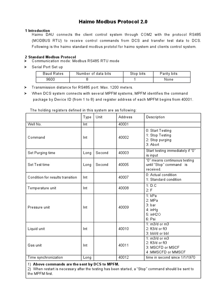 Following is the haimo standard modbus prototol for haimo system and clients control system.