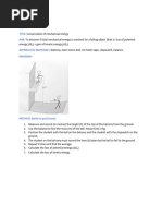 ball took to fall was calculated. vf(m/s) was calculated using the method v=gt² where g= 9.8m/s². mgh must be used