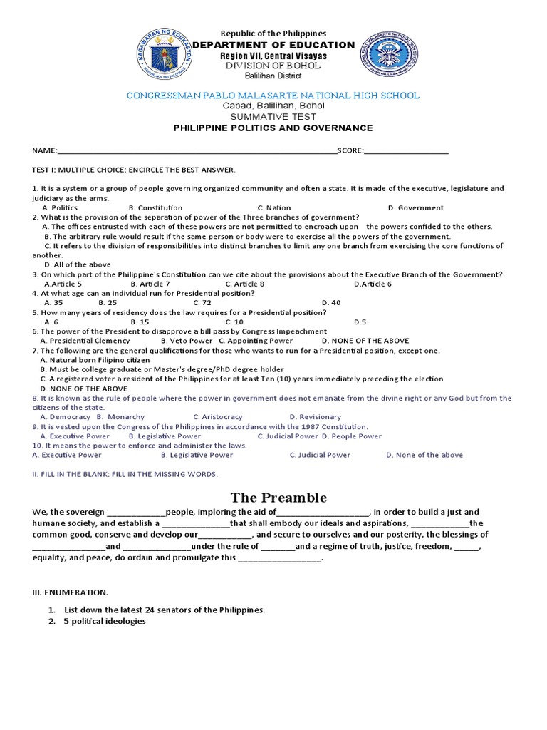 PERFORMANCE TASK NUMBER 1: INTERVIEW ANY GOVERNMENT OFFICIAL AND ASK FOR THEIR BEST