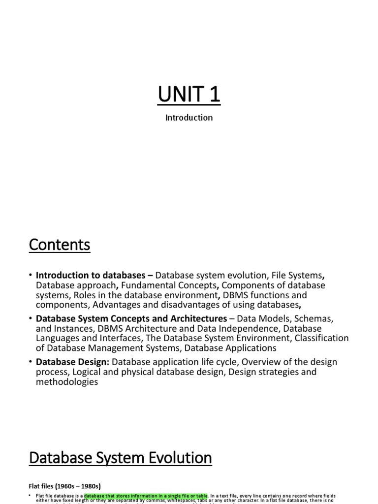 • Introduction to databases – Database system evolution, File Systems,