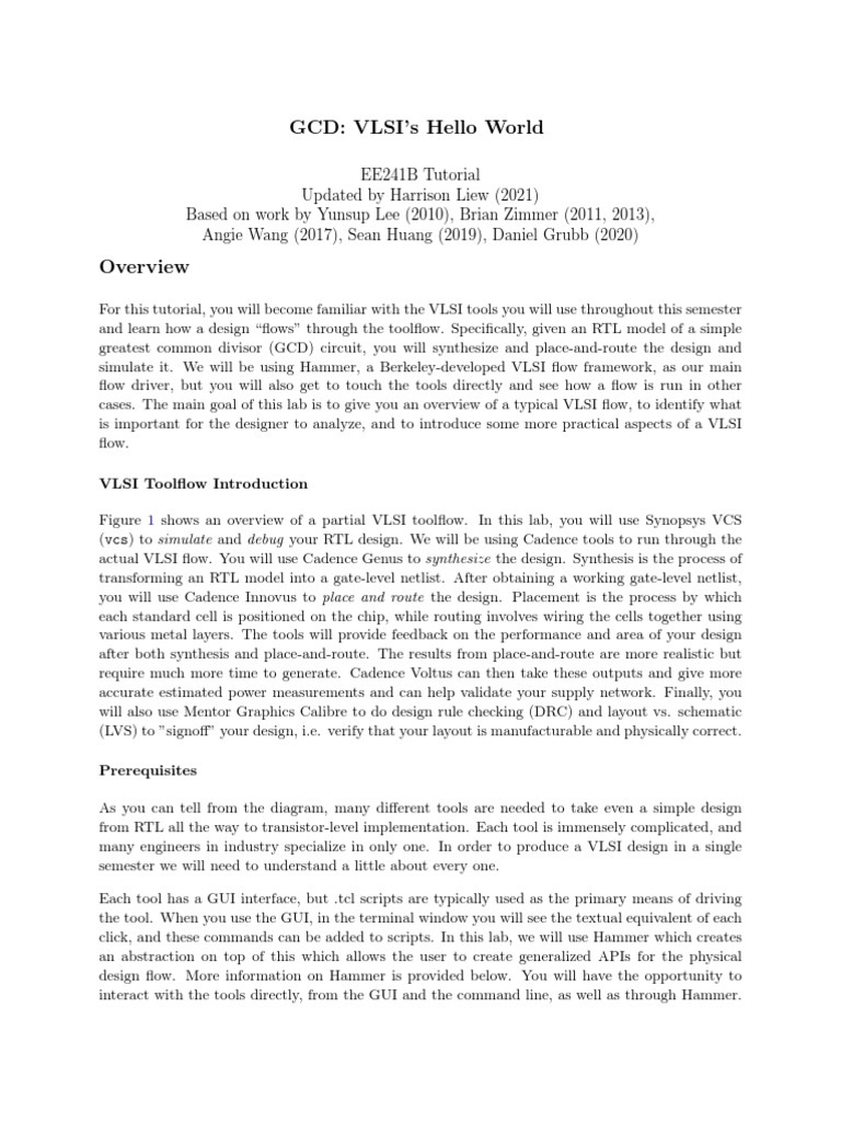 EE241B Tutorial, GCD: VLSI’s Hello World, Spring 2021 2