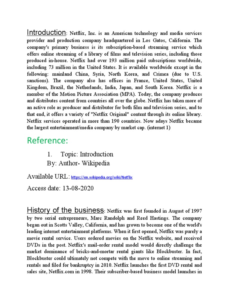 History of the business: Netflix was first founded in August of 1997