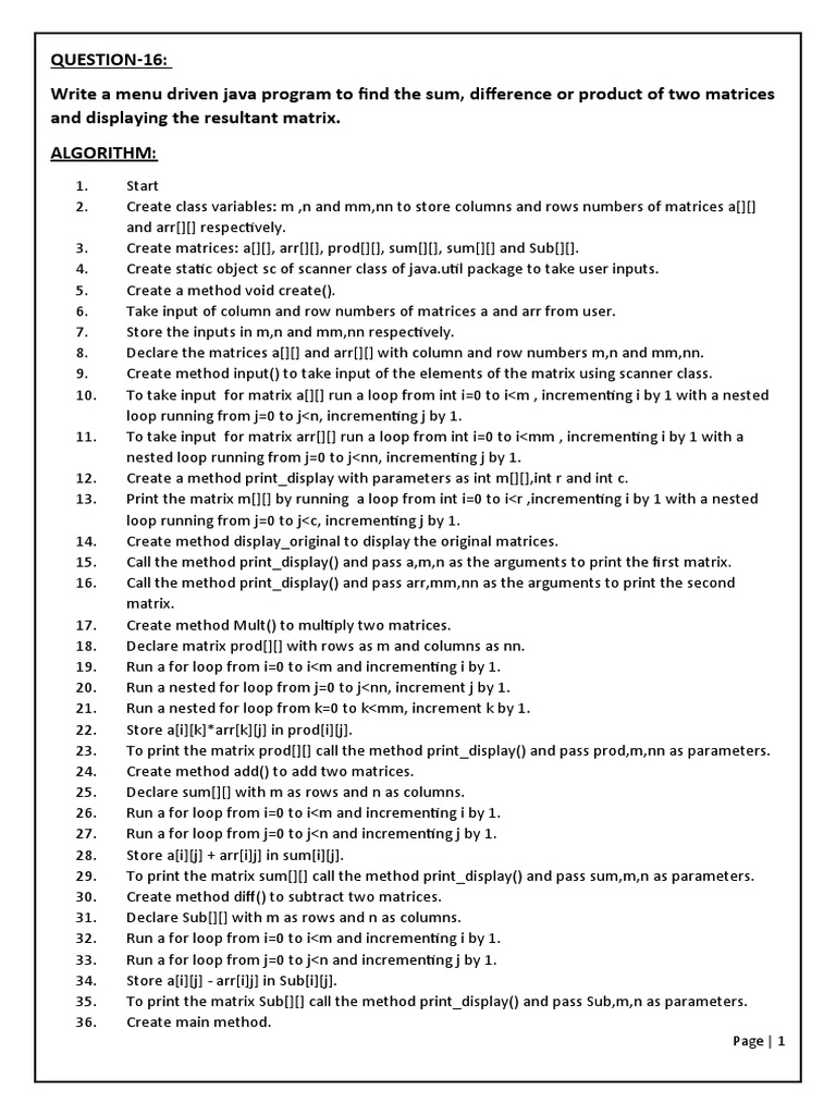 3. Create matrices: a[][], arr[][], prod[][], sum[][], sum[][] and Sub[][].