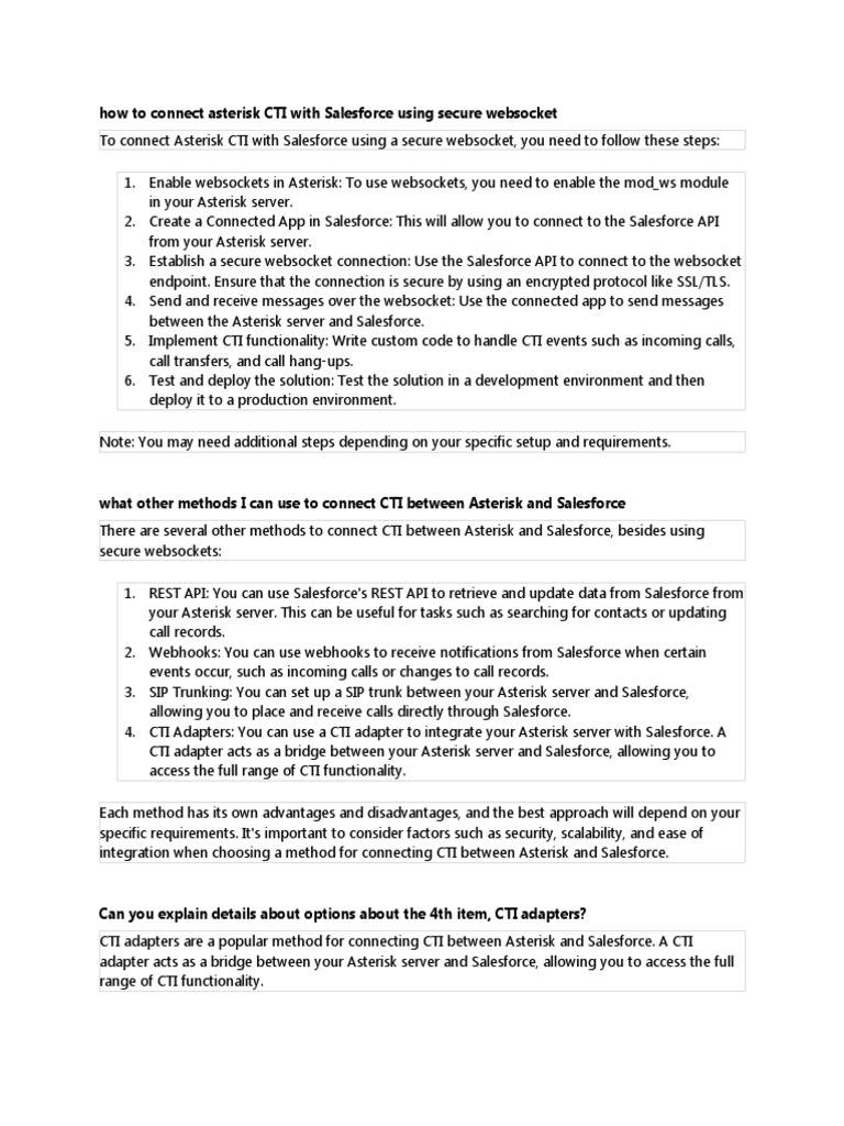 There are several other methods to connect CTI between Asterisk and Salesforce, besides using