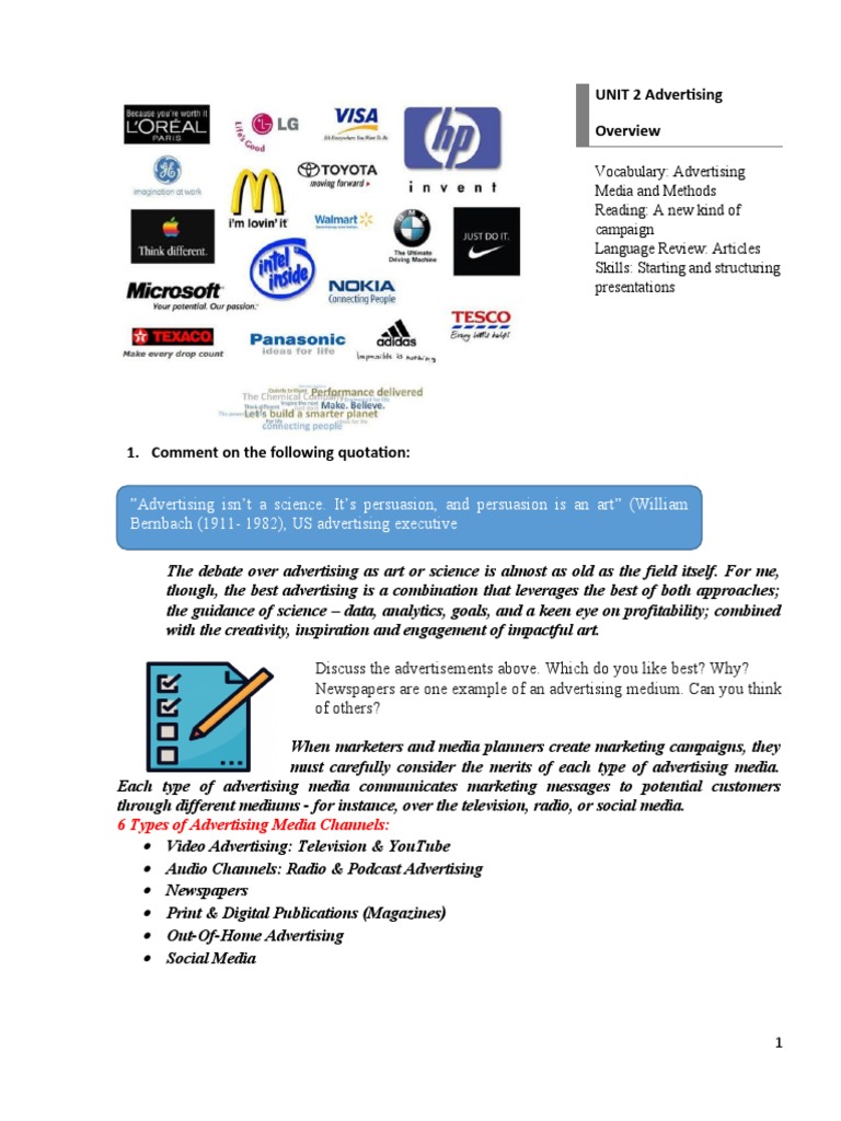 UNIT 2 Advertising