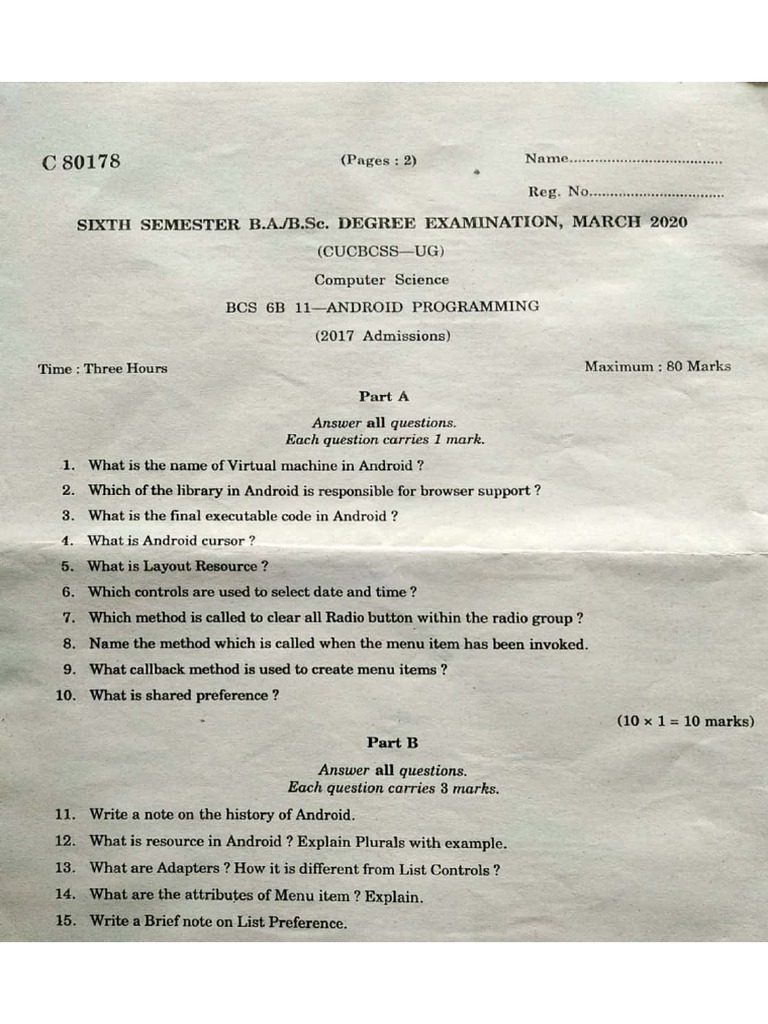 SIXTH SEMESTER B.A/B.Sc. DEGREE EXAMINATION, MARCH 2020