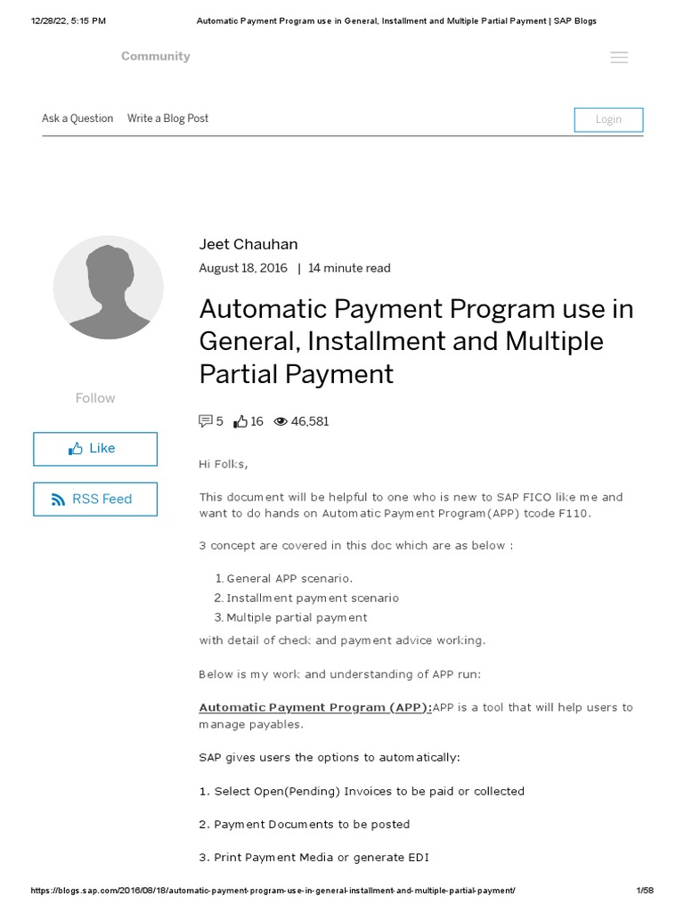 12/28/22, 5:15 PM Automatic Payment Program use in General, Installment and Multiple Partial Payment | SAP Blogs