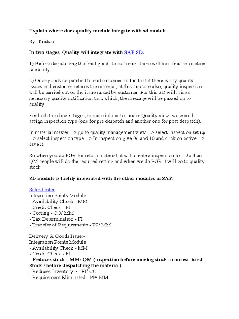 - Reduces stock - MM/ QM (Inspection before moving stock to unrestricted