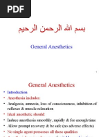 • General anesthesia produces reversible loss of all sensations and consciousness.