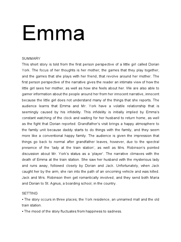 The short story Emma is about two young girls ( Maria and Dorian) who aspire to