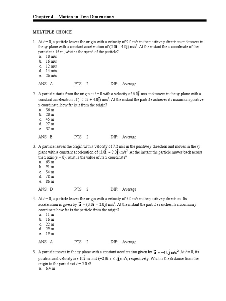 1. At t = 0, a particle leaves the origin with a velocity of 9.0 m/s in the positive y direction and moves in