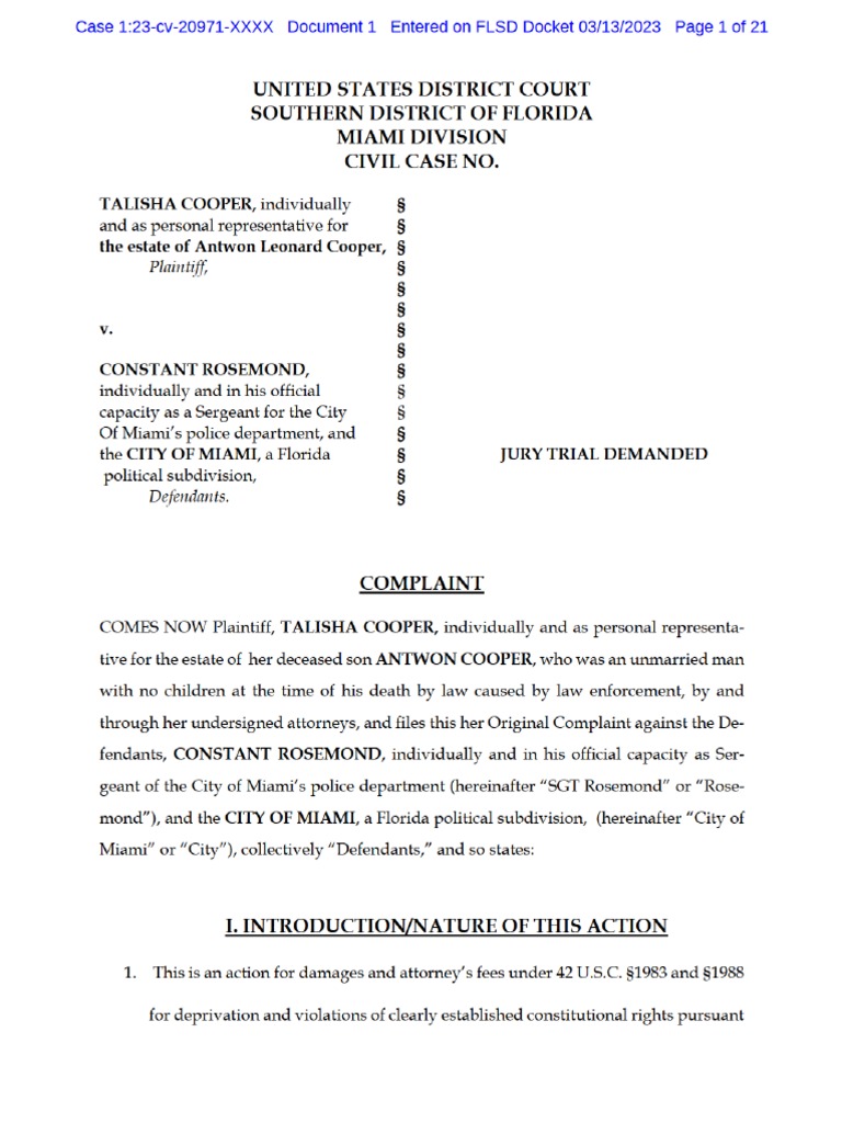 C a s e 1: 2 3- c v- 2 0 9 7 1- X X X X D o c u m e nt 1 E nt er e d o n F L S D D o c k et 0 3/ 1 3/ 2 0 2 3 P a g e 2 1 of 2 1