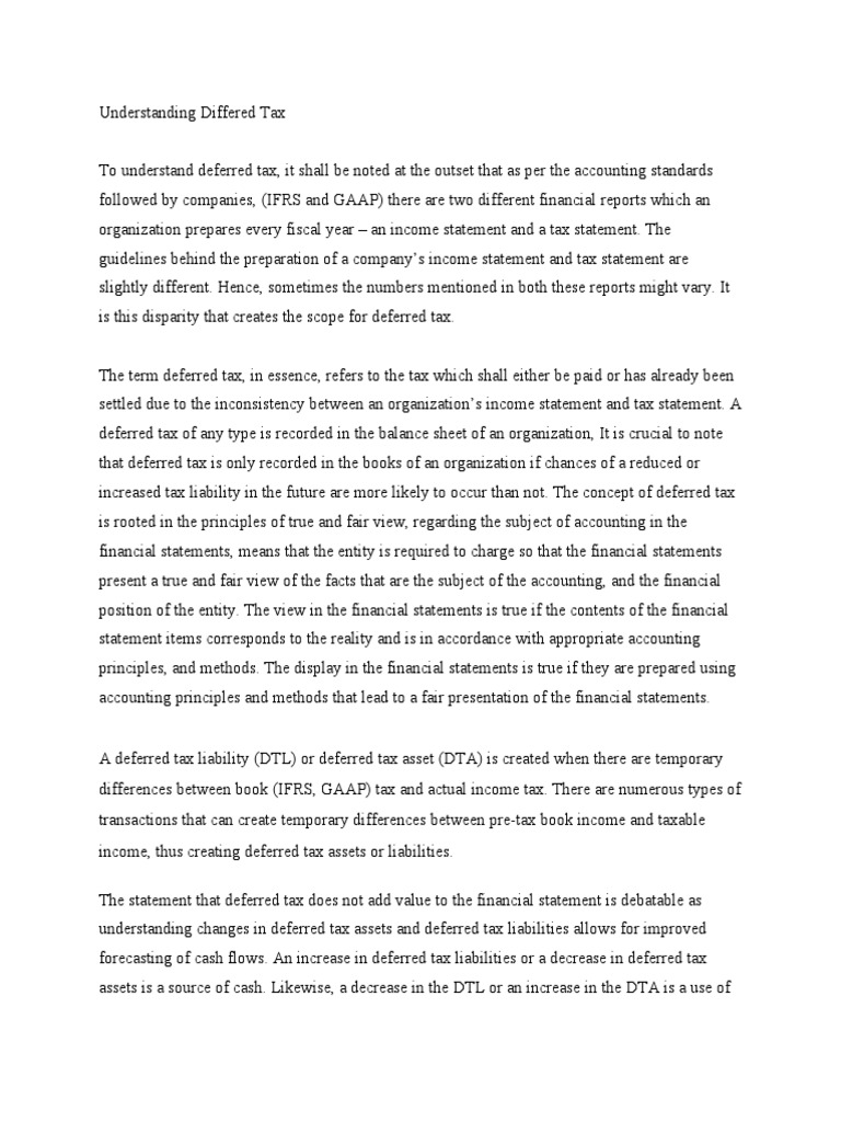 To understand deferred tax, it shall be noted at the outset that as per the accounting standards