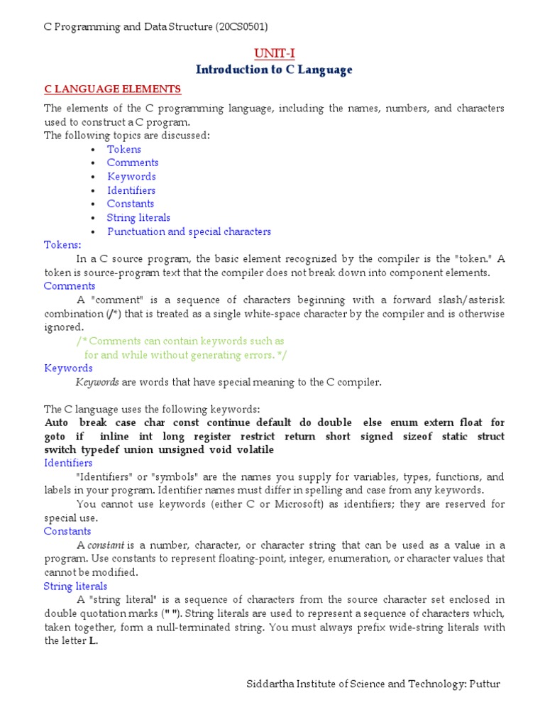 C LANGUAGE ELEMENTS