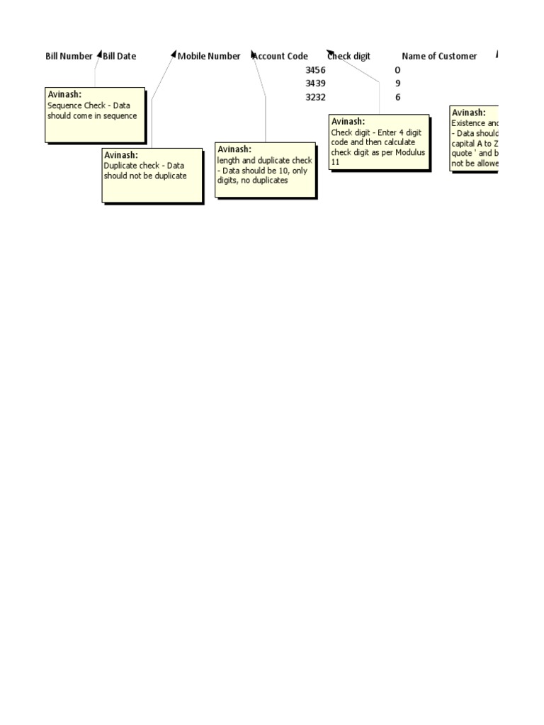 Bill Number Bill Date Mobile Number Account Code Check digit Name of Customer