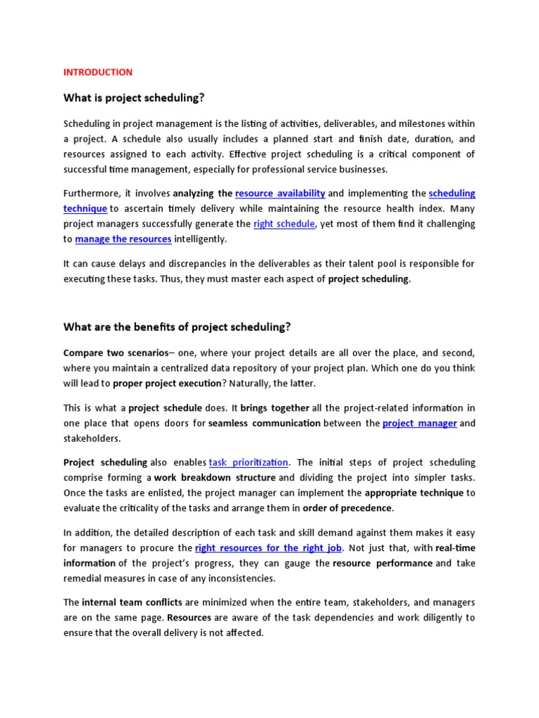 resources assigned to each activity. Effective project scheduling is a critical component of