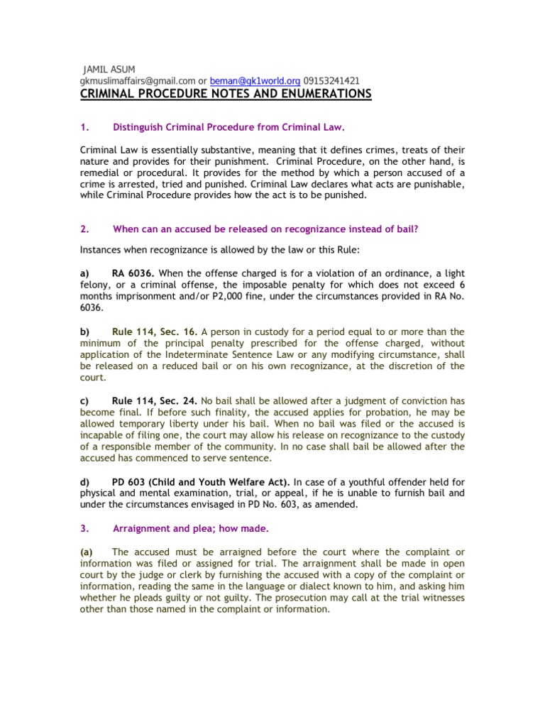 Criminal Procedure Notes and Enumeration 1