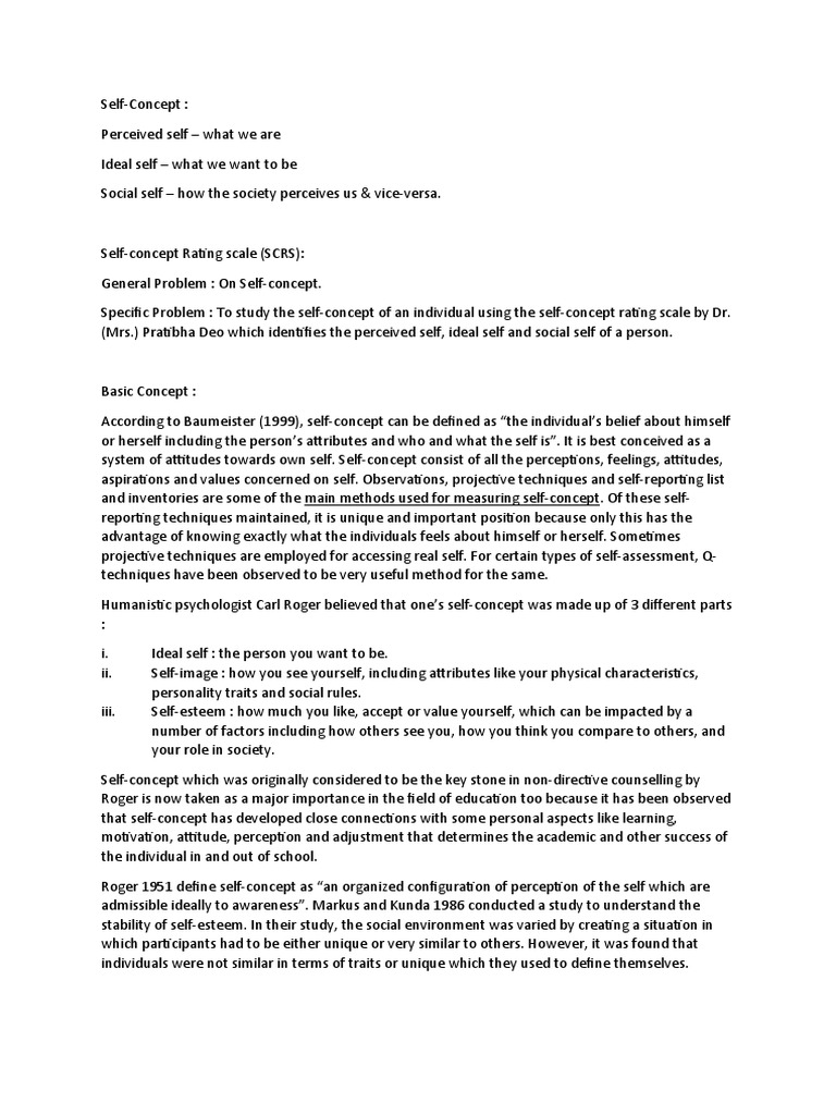 Specific Problem : To study the self-concept of an individual using the self-concept rating scale by Dr.