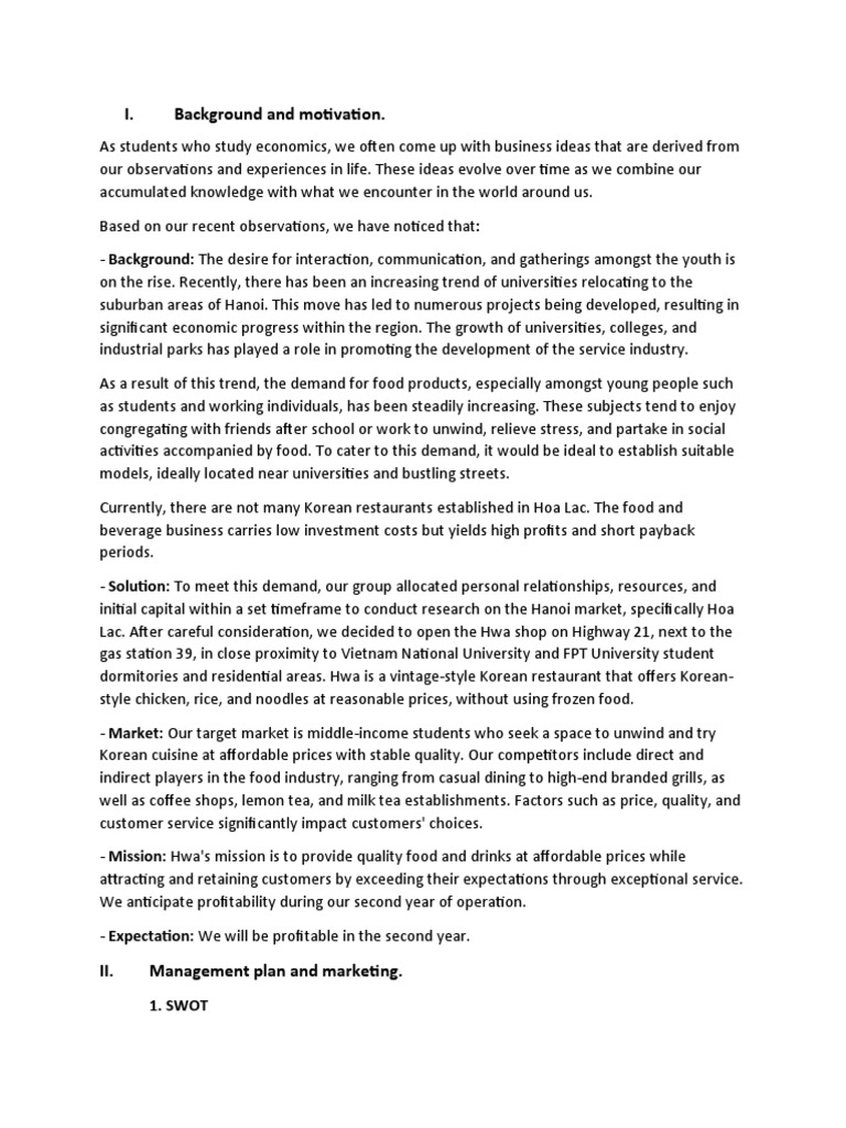 initial capital within a set timeframe to conduct research on the Hanoi market, specifically Hoa