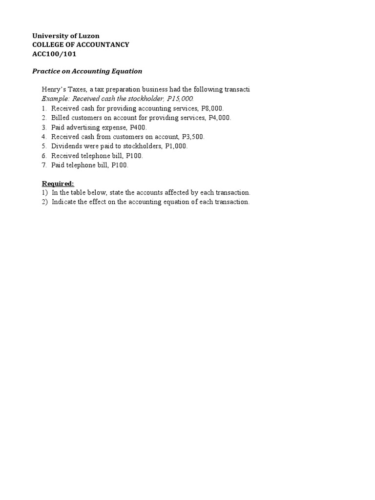 Practice on Accounting Equation