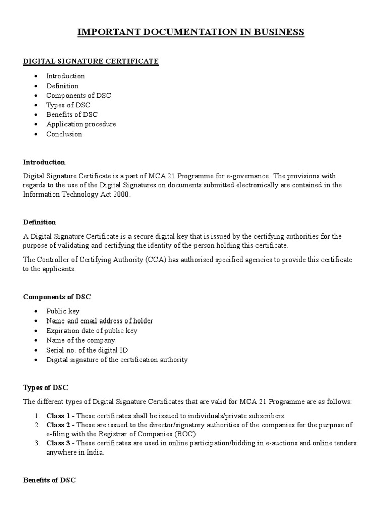 Digital Signature Certificate is a part of MCA 21 Programme for e-governance. The provisions with