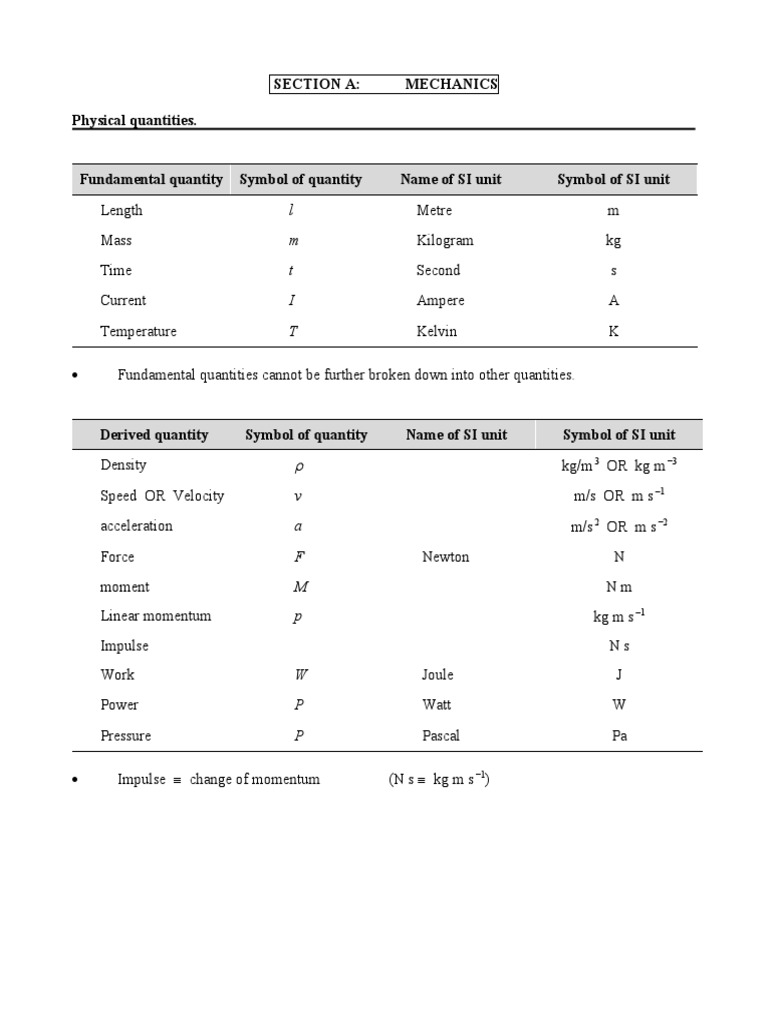 Physical quantities.