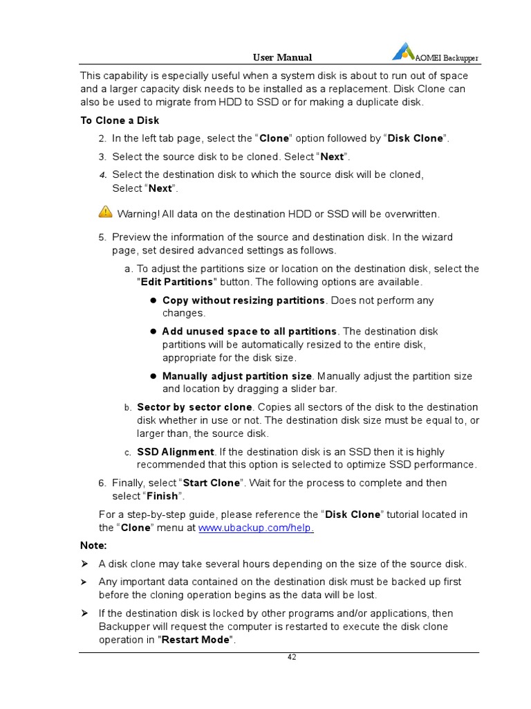 Warning! All data on the destination HDD or SSD will be overwritten.