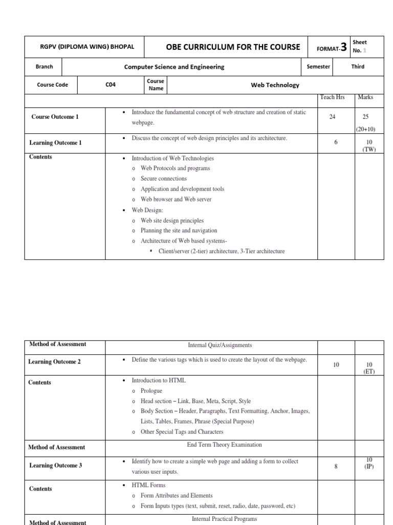 RGPV (DIPLOMA WING) BHOPAL OBE CURRICULUM FOR THE COURSE FORMAT- 3 No. 1
