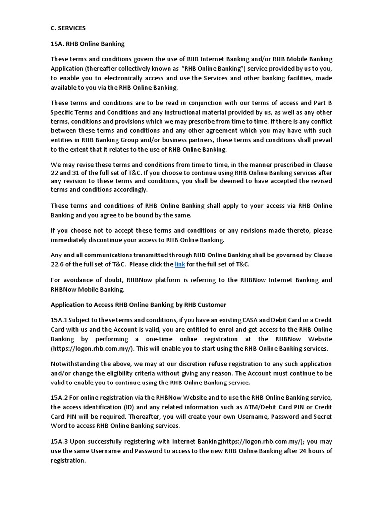 22 and 31 of the full set of T&C. If you choose to continue using RHB Online Banking services after