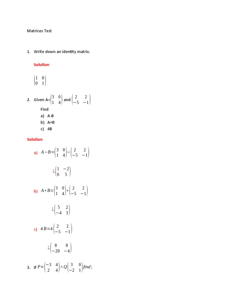 Matrices Test