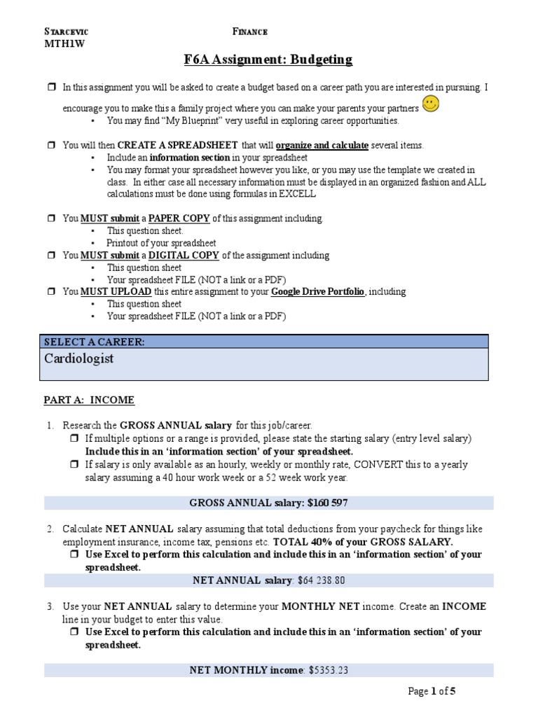 ❒ In this assignment you will be asked to create a budget based on a career path you are interested in pursuing. I