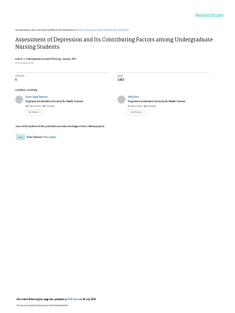 approach to better understand the factors leading to depression among undergraduate nursing students. Early