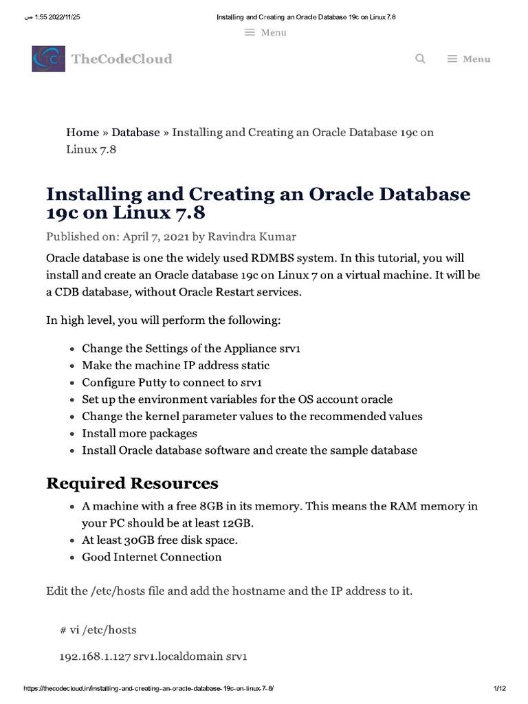 hipsthecodecloudivnstaling-and-creating-an-oracte- database 96-1 Ine 7-8 wawn 1 azar2s Instaling and Creating an Oraco Database 19¢ on Lru7.8
