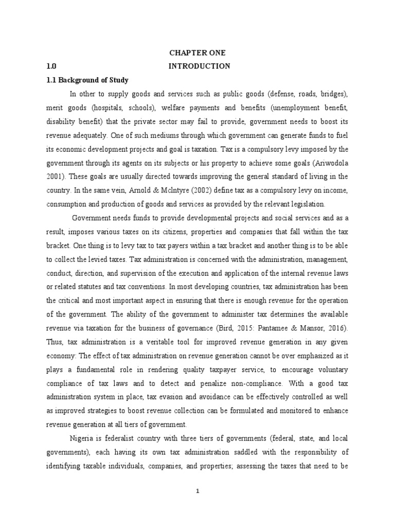 administration in Nigeria include lack of adequate equipment for the tax administrators to carry
