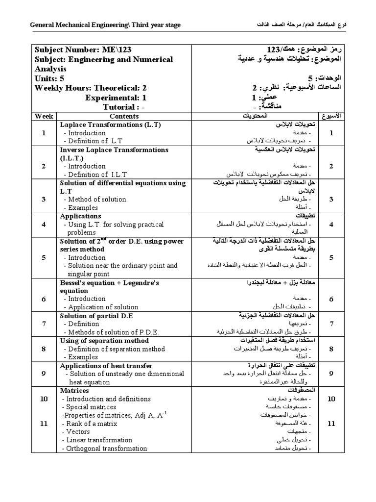 Subject: Engineering and Numerical ﺗﺤﻠﯿﻼت ھﻨﺪﺳﯿﺔ و ﻋﺪدﯾﺔ:اﻟﻤﻮﺿﻮع