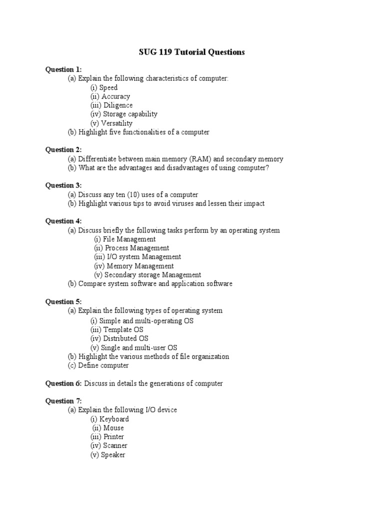 SUG 119 Tutorial Questions