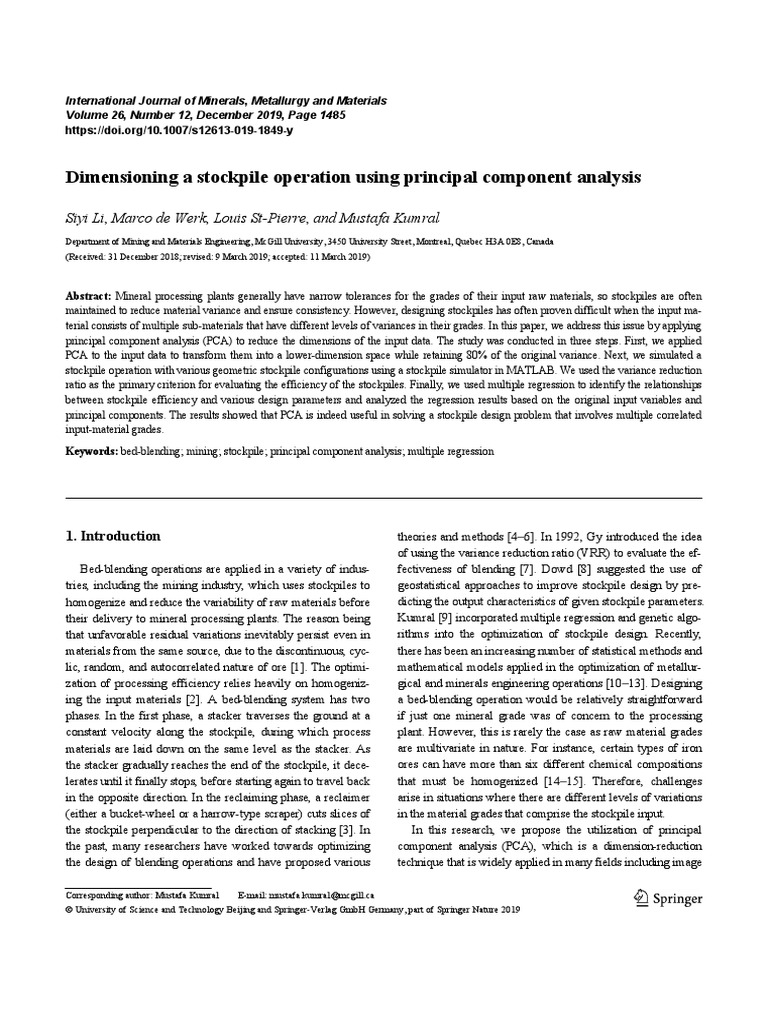 S.Y. Li et al., Dimensioning a stockpile operation using principal component analysis 1487
