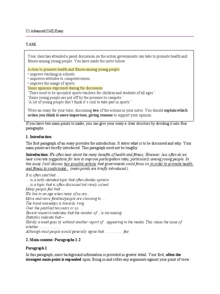 Write an essay for your tutor, discussing two of the actions in your notes. You should explain which