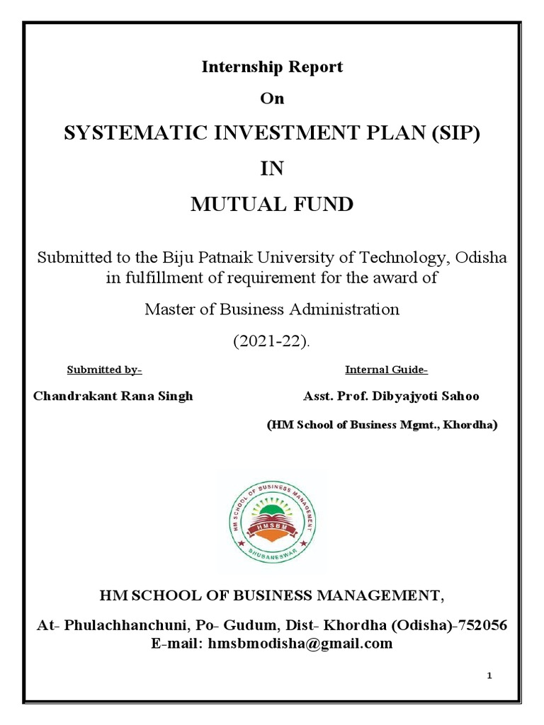 Subject: Submission of Internship Report “Systematic Investment Plan (SIP) in Mutual Fund”