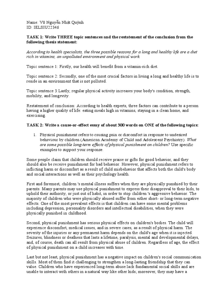 should also be receive punishment for bad behavior. However, physical punishment refers to