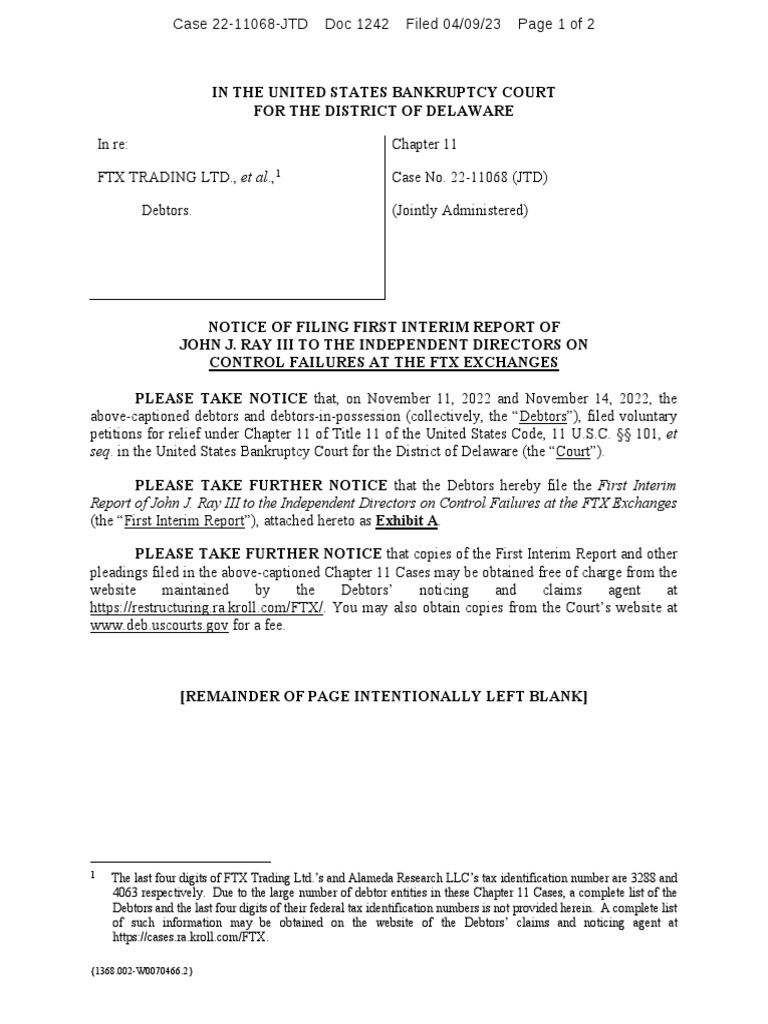 Case 22-11068-JTD Doc 1242 Filed 04/09/23 Page 2 of 2