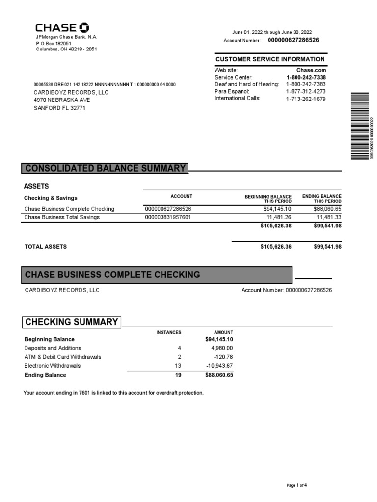 CARDIBOYZ RECORDS, LLC Account Number: 000003831957601