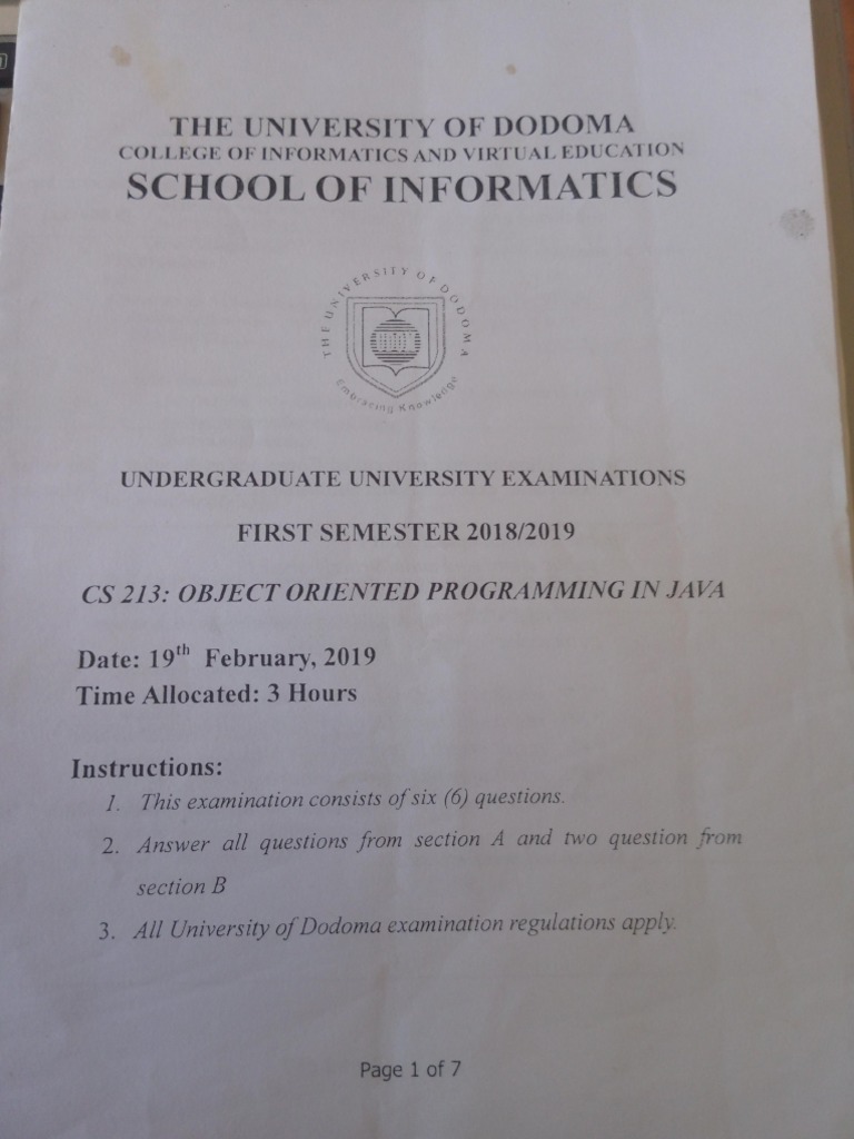CS 213: OBJECT ORIENTED PROGRAMMING IN JAVA